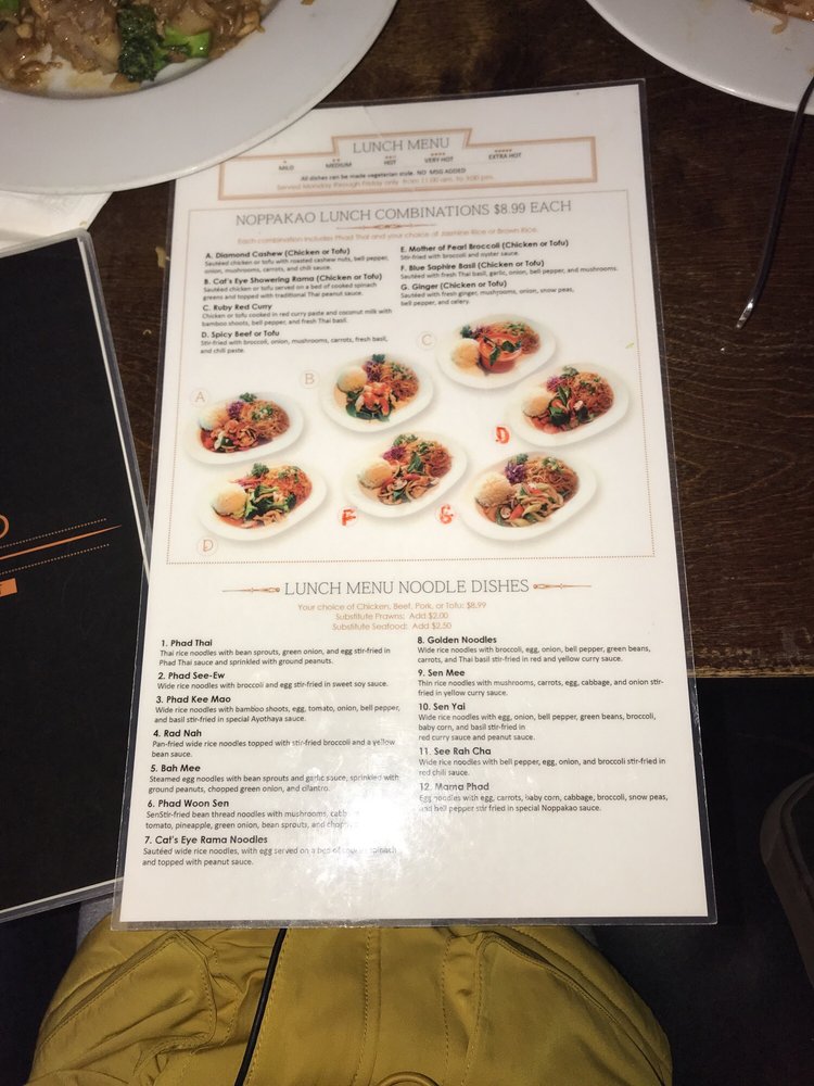 “ Wonderfully nice. Noppakao is a nice family Thai restaurant in a nice neighborhood . It is a nice place to go (to dine in or take out) whether you are looking for lunch or dinner. The dining room is nice, not fancy, not over-the-top, not extravagant, but nice. It is clean, in good repair, but starting to get dated; it's nice. The staff is nice, attentive, and friendly. The menu is nice. It offers a complete variety of Thai dishes without wandering from its Thai roots. The pricing is nice, good value. The dinners were nice, not over-the-top fancy, but nice. Each meal was hearty, we even have some to-go for lunch the next day. Yes, we will be back, it was nice. Yes, we recommend, it was nice. ”